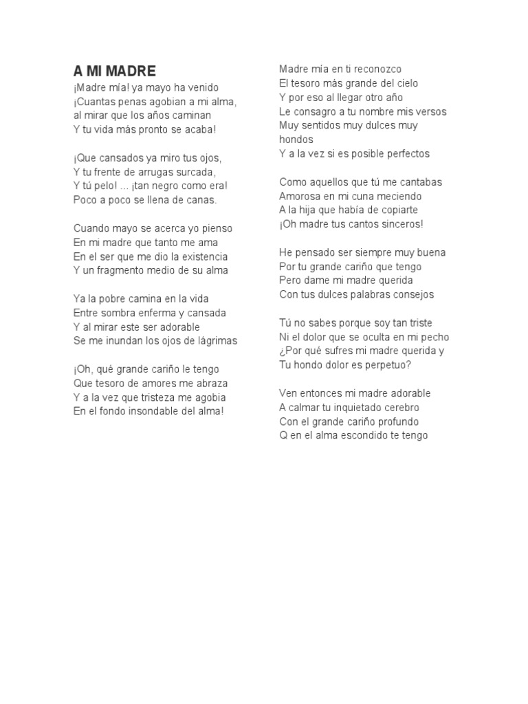Si me salgo a la calle ella me busca si me encuentro en prision ella me llora una madre que por su hijo implora tengo madre que llora por mi. Si tengo a mi madre and many other song lyrics of Julio Preciado translated into english can be found in Translate Lyrics. Original lyrics of Tengo Madre song by Julio Preciado.